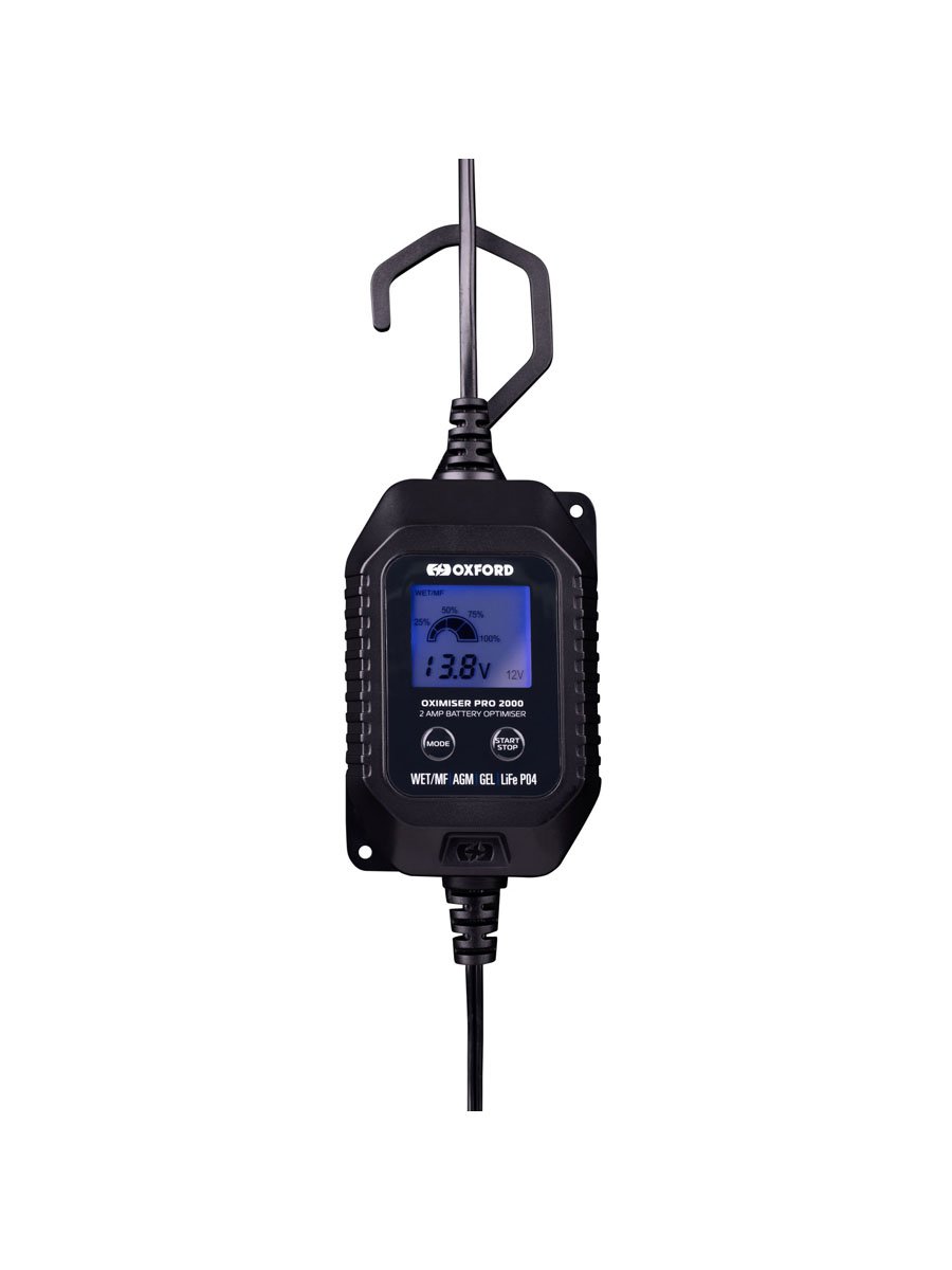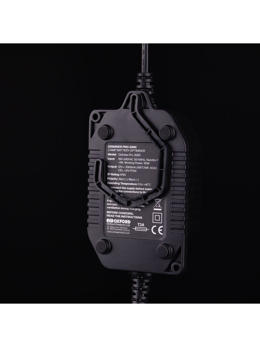 Suitable for use in any environment, the Oximiser Pro's high impact, fire resistant ABS casing is ultrasonically sealed to achieve an IP65 rating. The clear, easy-to-read LCD display assists the user throughout the charging stages and if required, the charger can be lifted off the ground by clipping on a removable hanger.
