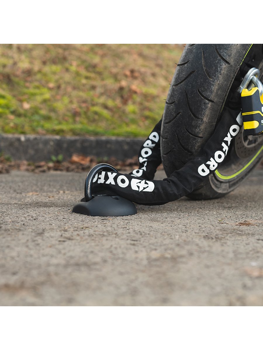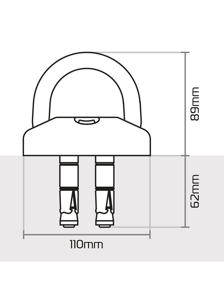 When used as a ground anchor, it is ideal for high traffic areas, as it can be ridden/driven over when the shackle is laid flat.