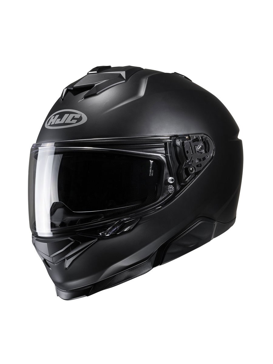 The i71 pushes the boundaries for a Sport-Touring model with its new sleek shell design. The Advanced Polycarbonate helmet now has 3 shells throughout the 6 available sizes to help optimize weight and comfort for the rider. The rearranged top vent with enlarged mouth vents allows increased air intake and ventilation. Also new with the i71 are both face shield and sun visor. The HJ-38 Pinlock ready face shield comes with a new PE (Push/Eject) locking system for improved safety, yet still easy to use with gloves. The new sun visor (HJ-V12) provides a new 3-position option for the rider to adjust the sun shield forward (up to 10mm) delivering ideal sun visor protection. The i71 will also accept the second-generation Smart HJC Bluetooth systems.