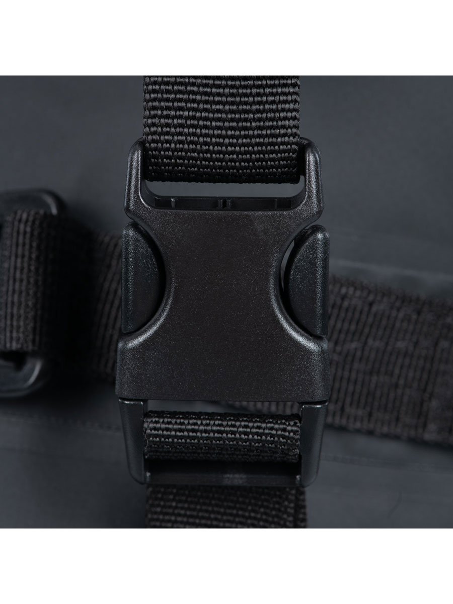 - Waterproof roll top closure with compression straps for maximum stability.