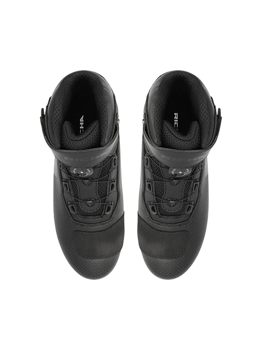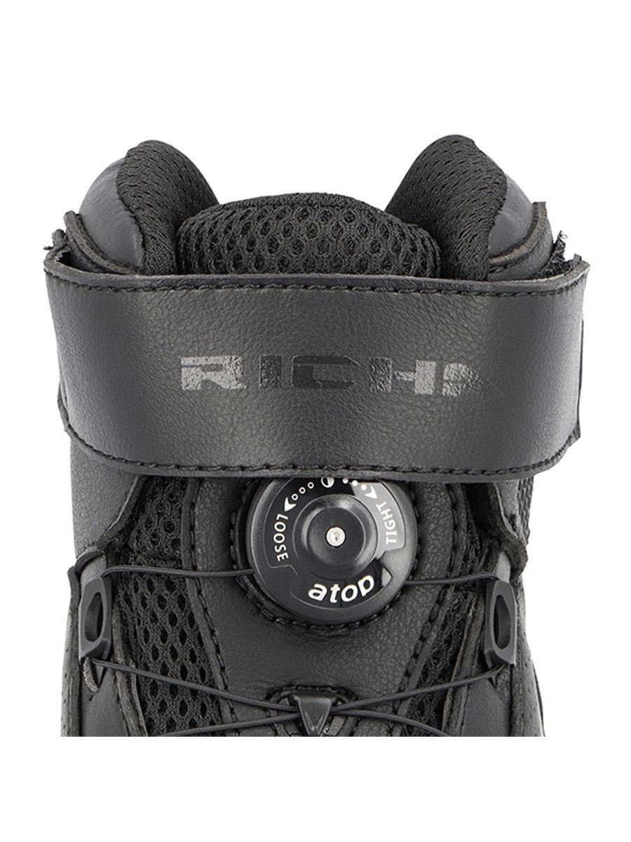Richa Escape X Boots blend sleek, urban styling with real-world riding performance. CE Approved Level 1 for PPE – 1 1 1 2, they deliver dependable protection without sacrificing everyday comfort. The microfibre upper keeps weight low while offering durable abrasion performance, and CE-certified ankle reinforcement plus toe & heel reinforcements add impact protection and structure. A wear-resistant rubber outsole provides confident grip, while the ATOP® reel-knob lacing system gives fast, one-hand adjustment and an optimal fit. Breathable uppers and a soft fabric lining keep things comfortable on and off the bike.