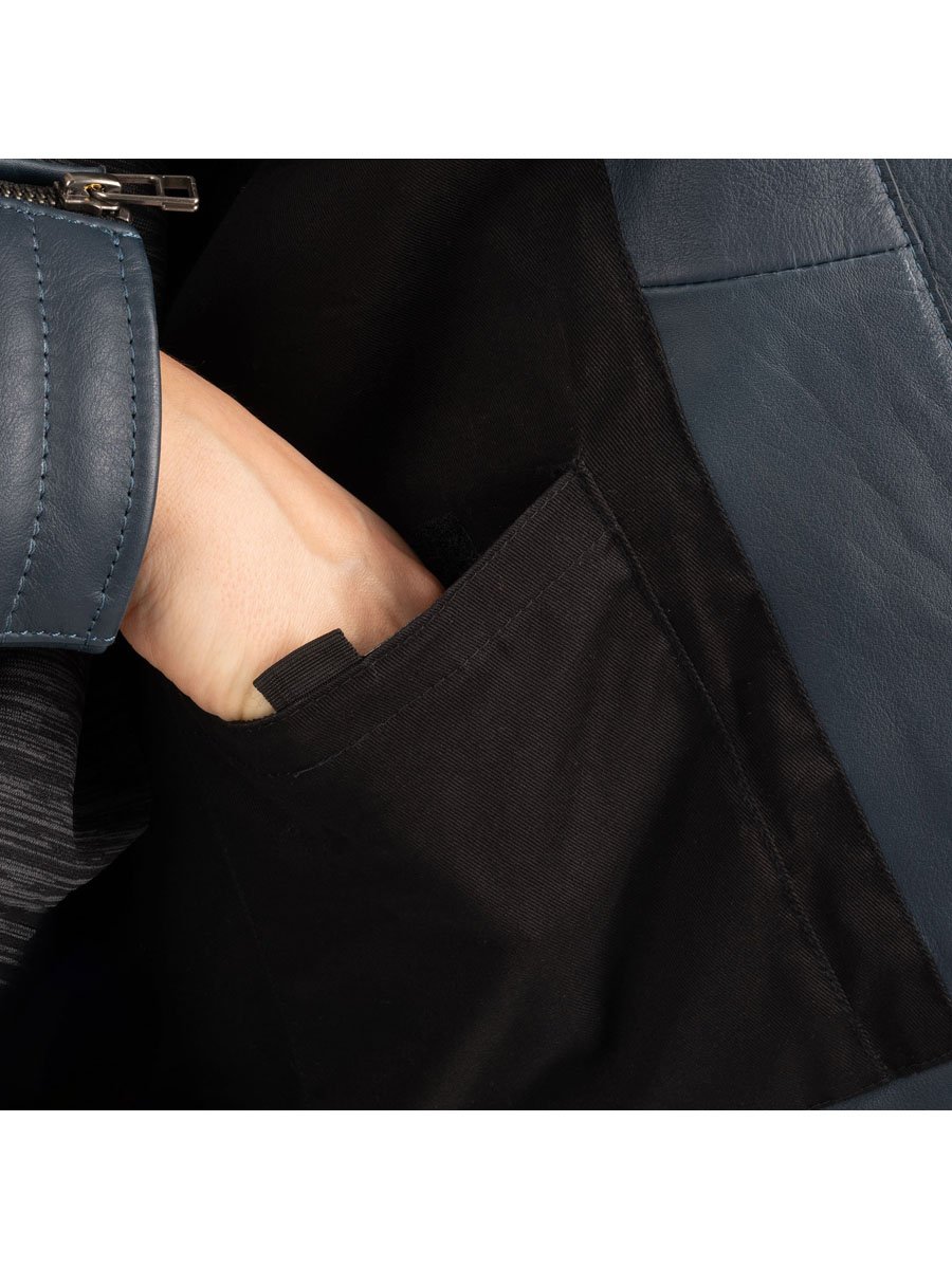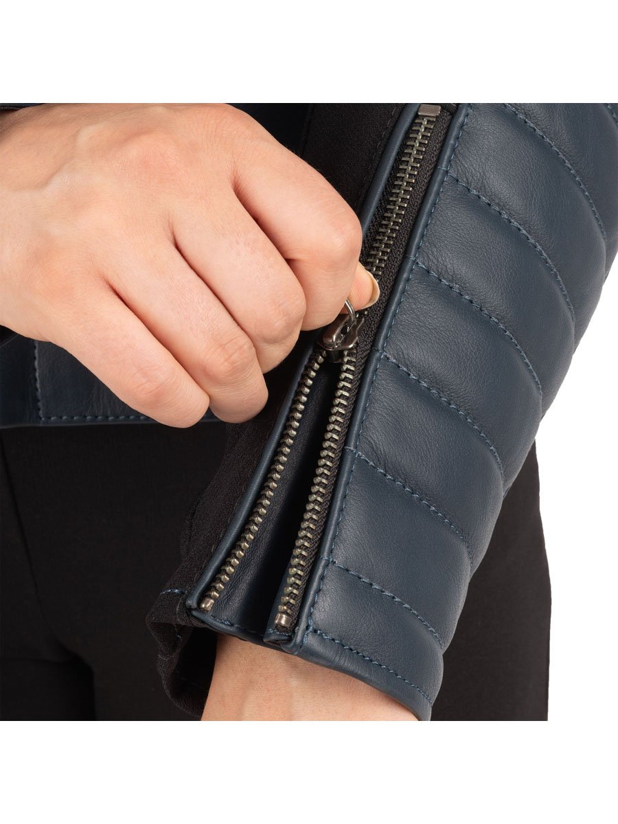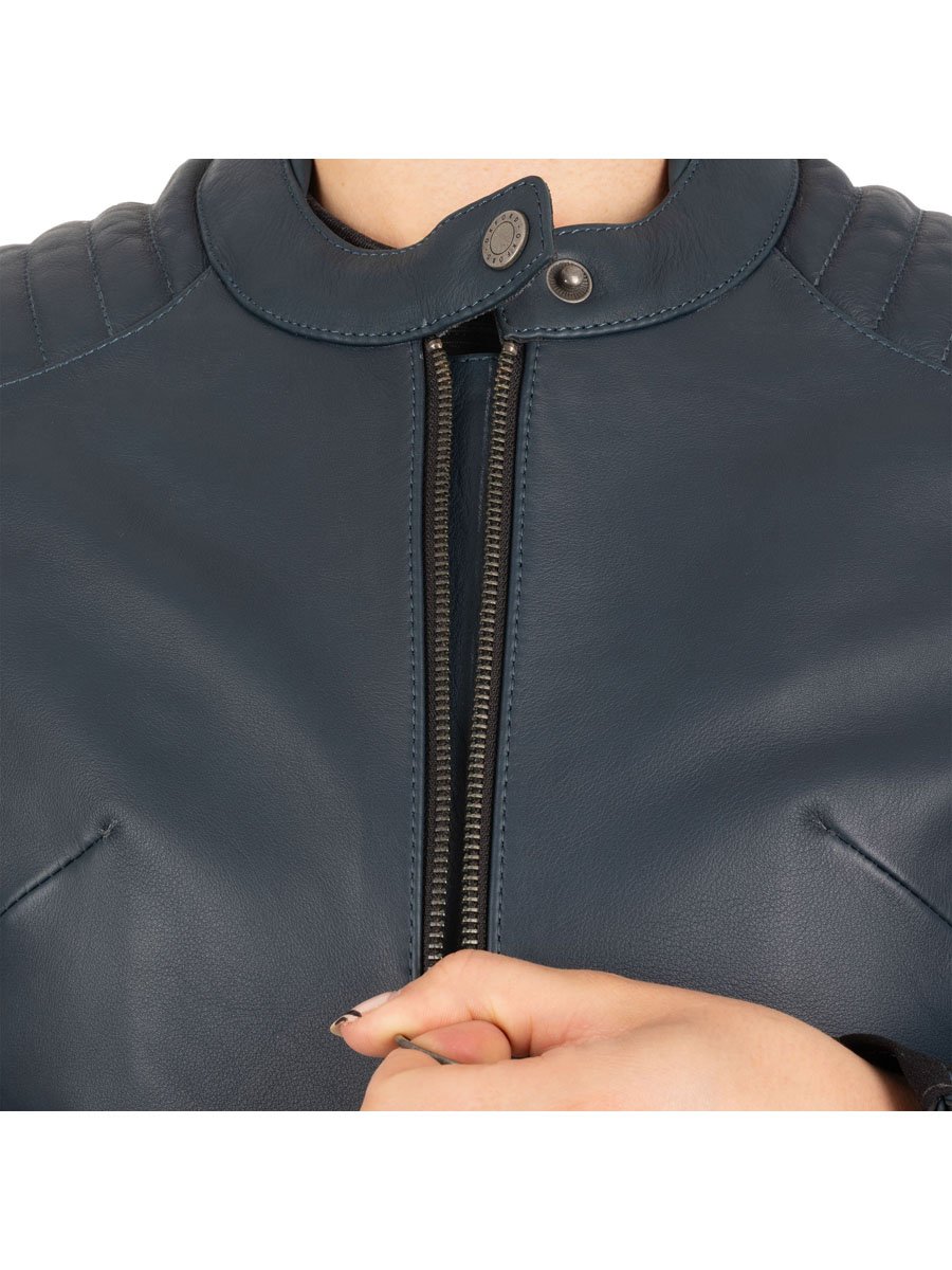 Sleek, classy and packed with classic styling details, the Radley is designed to make a fashion statement. The Radley women's leather jacket is constructed from premium full-grain 1.2mm cowhide leather and features CE level 2 shoulder and elbow protectors, belt connection loops and stretch fabric at the underarm.
