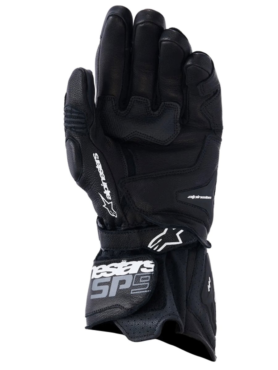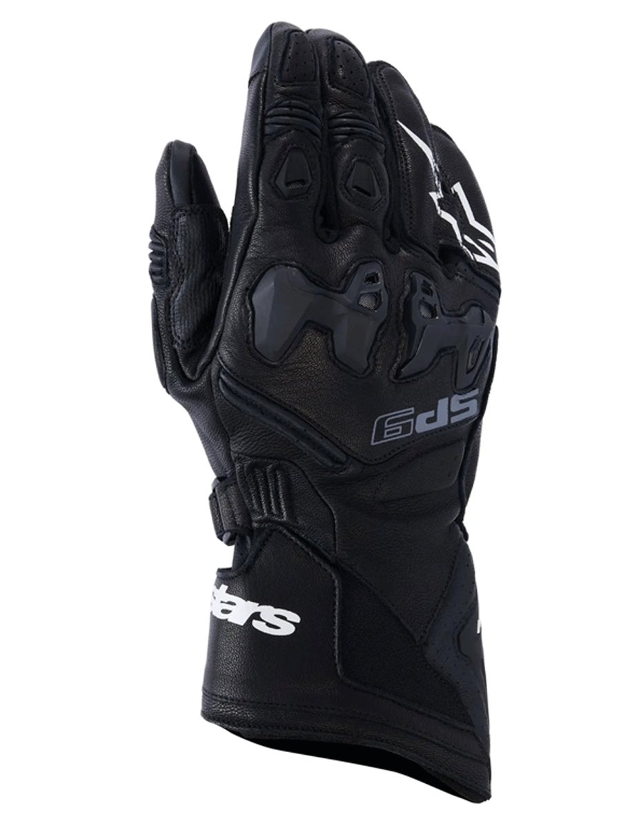 The Alpinestars SP-9 Leather Glove is a universal performance glove with genuine racing DNA, built for fast road riding and track days. Full-grain goat leather, a MotoGP-derived SP-R divided knuckle, and a long dual-closure cuff deliver confident protection, while pre-shaped fingers and stretch zones keep movement natural at the controls.